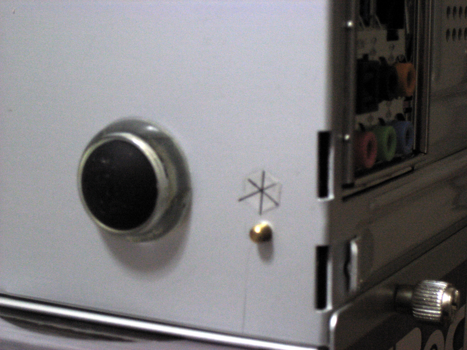 さて、上記で説明したマザーを取り付けるスペーサーネジ穴ですが、正確に8ミリずらしてドリルで穴をあけなければなりません。 ケース底面を見ると、元のスペーサーの部分に6角形の形が見えます。下の画像を参照・・・ |