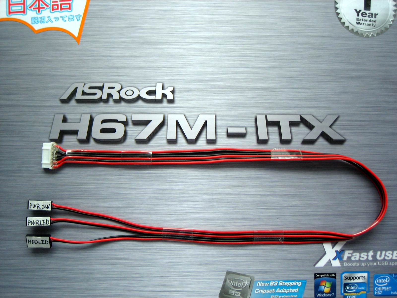 ASRock H67M-ITXマザーの電源は、20ピンでも動くようですが、安定動作を確保するために 20ピン ⇒ 24ピン の変換ケーブルを使います。 |